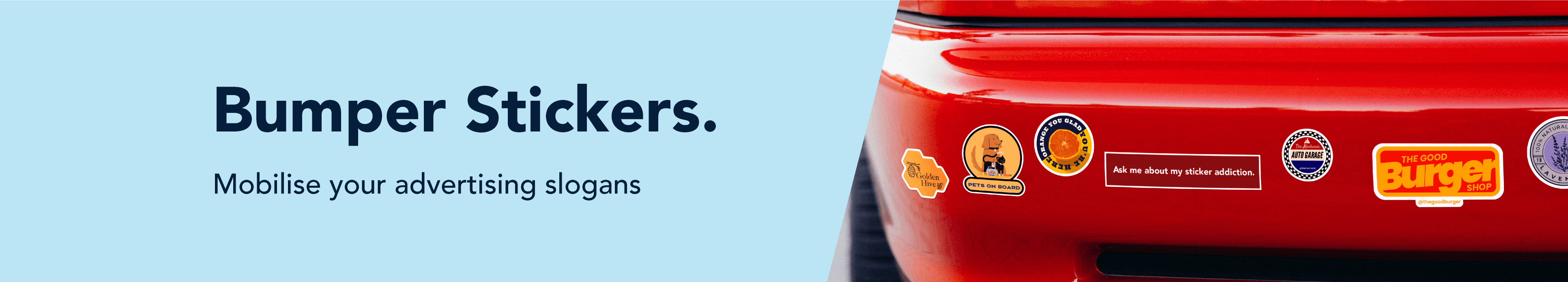 Bumper stickers mobilise your advertising slogans, giving you the perfect opportunity to attach a memorable design to your car.